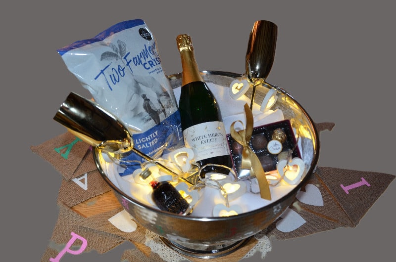 Our special celebration package offers a fantastic opportunity to treat your loved one. It includes a bottle of sparkling wine from White Heron Estate in Herefordshire, along with a 50ml bottle of White Heron Cassis made from blackcurrants grown on the estate. You can enjoy it on its own as a lovely aperitif, or you can enhance the sparkling wine by adding a splash to each glass, all sourced from a vineyard just 8 miles from Pitch Farm. Additionally, the package comes with a box of six artisan Belgian truffles made in Shropshire and a delicious bag of Two Farmers hand-cooked lightly salted crisps, made from potatoes grown on a farm in Herefordshire.
